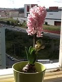 A minha singela contribuição para o nosso Blog vai ser este magnífico jacinto que coloquei na janela... O seu nome científico é Hyacinthus L. e é um género da família hyacinthaceae. De nome comum jacinto, é uma planta perene bulbosa, originária da região mediterrânea e da África Meridional. O seu nome provém de Jacinto, da mitologia grega. (retirado da Wikipedia).